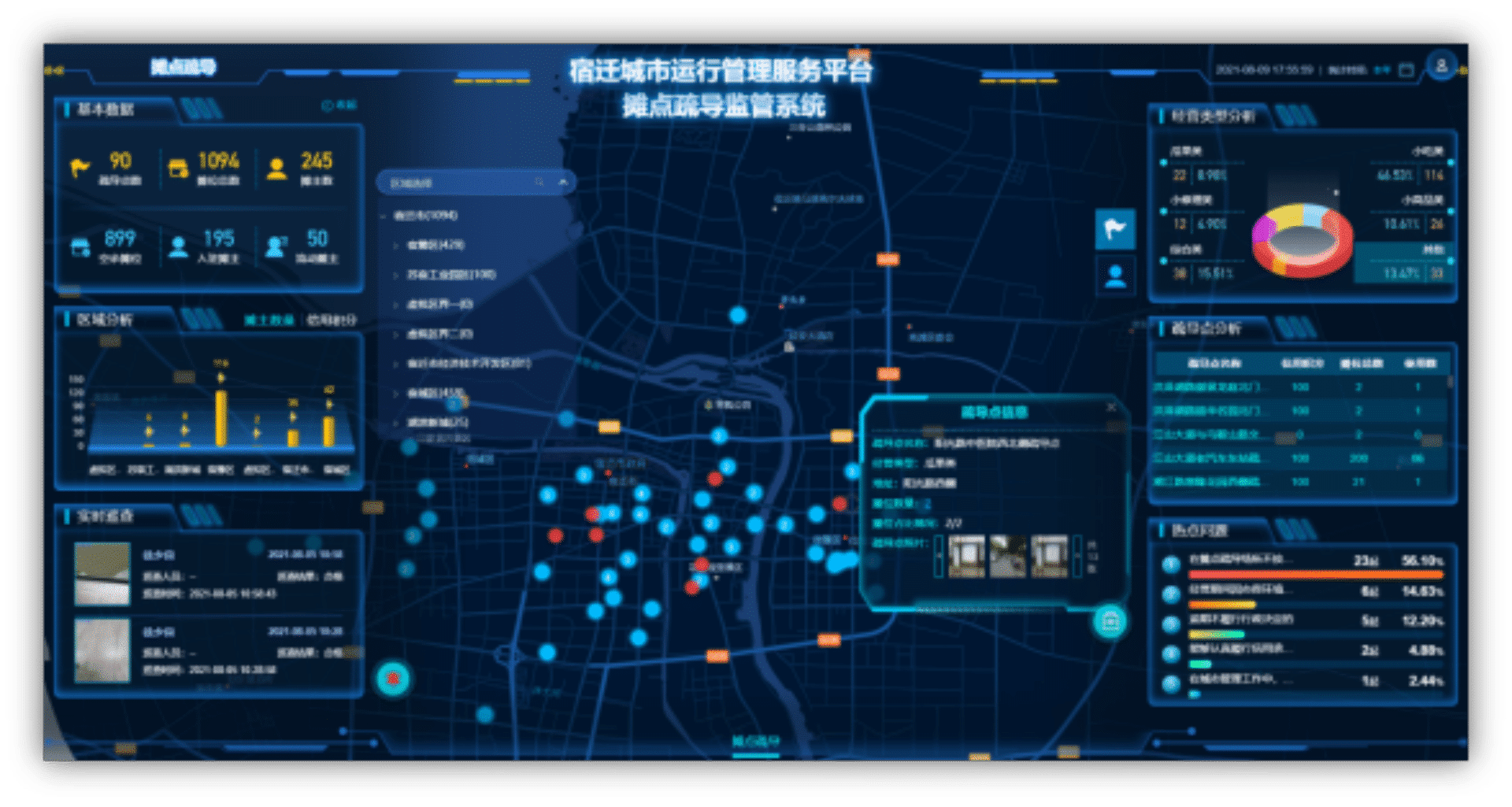 即刻了解為貫徹習(xí)近平總書記關(guān)于提高城市科學(xué)化、精細(xì)化、智能化管理水平的重要指示精神,宿遷市攤點疏導(dǎo)監(jiān)管系統(tǒng)立足于全市建立統(tǒng)一管理的疏導(dǎo)點、攤位、攤主信息庫,采用“疏堵”結(jié)合的方式,明確管理主體、負(fù)責(zé)人、疏導(dǎo)點經(jīng)營類型等信息,形成統(tǒng)一管理的電子臺賬,便于規(guī)范流動攤販日常經(jīng)營活動區(qū)域,實現(xiàn)流動攤販定點經(jīng)營的精細(xì)化管理。