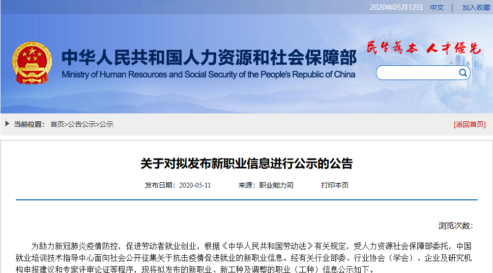 現(xiàn)將擬發(fā)布的新職業(yè)、新工種及調(diào)整的職業(yè)(工種)信息全文公示如下: